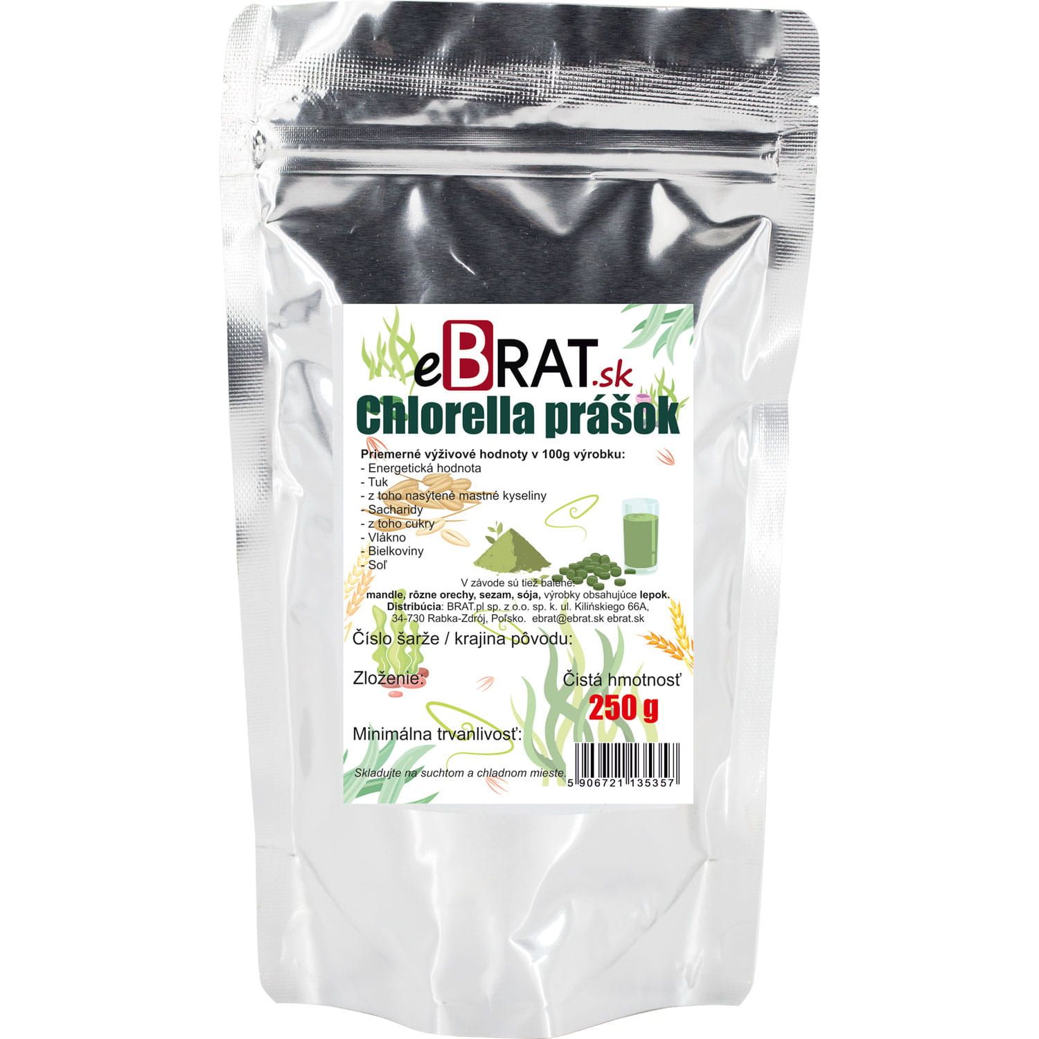 Balenie obsahuje 250 g chlorelly v prášku.