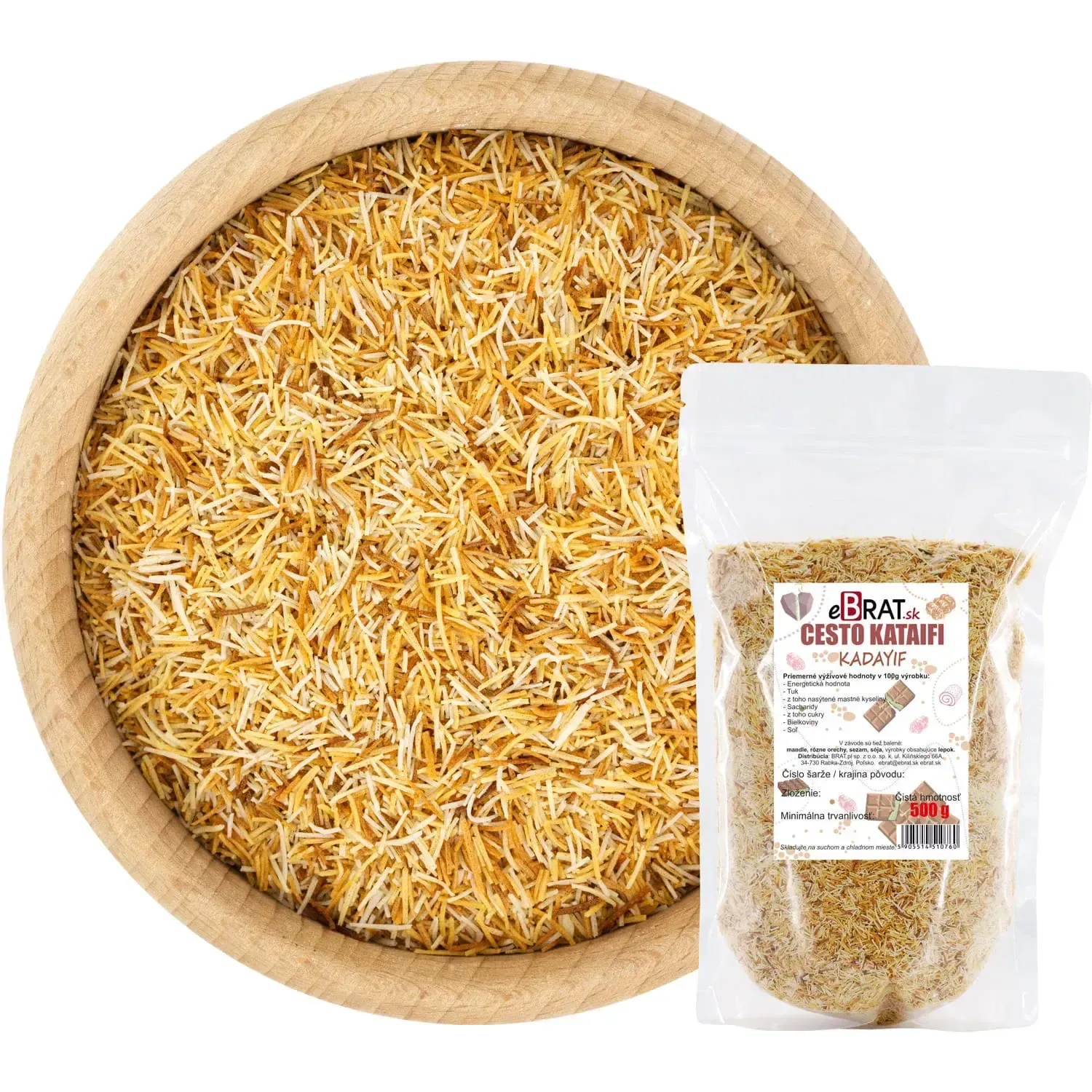 Cesto Kadayif v podobe pečených nití je výnimočná surovina, ktorá dodáva dezertom ľahkú a chrumkavú štruktúru. Jeho jemné, tenké vlákna sa po upečení stanú zlatistými a krehkými, čo z neho robí dokonalý doplnok k čokoláde, sirupu, medu či orechom. Kadayif je tradičný prvok blízkovýchodných dezertov, no vďaka svojej univerzálnosti nachádza využitie aj v moderných dezertoch. Výborne sa hodí ako základ na prípravu Dubajskej čokolády – luxusného dezertu spájajúceho eleganciu a orientálne chute.