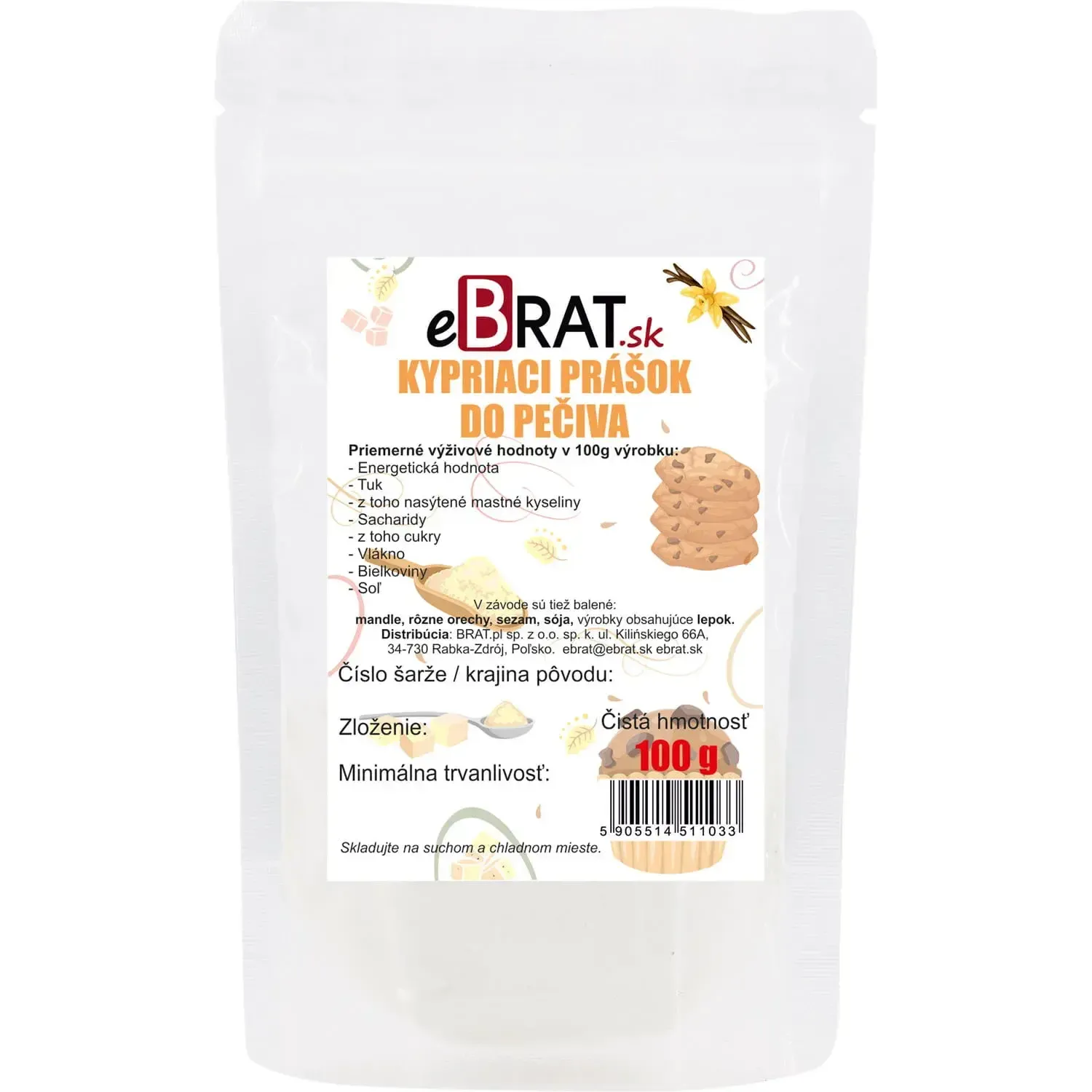 Balenie obsahuje 100 g prášku do pečiva.