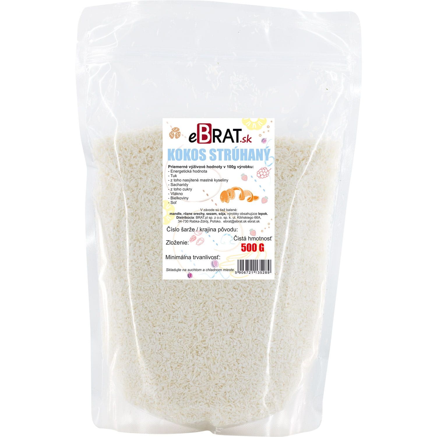 Balenie obsahuje 500 g strúhaného kokosu.