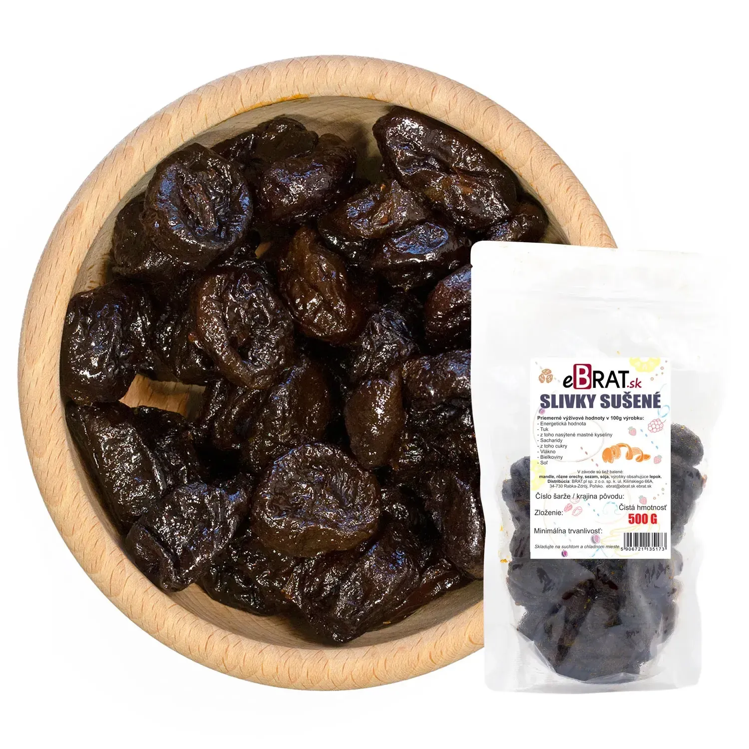 Sušené slivky sú chutná a zdravá pochúťka, ktorá poteší sladkou chuťou a mnohými zdravotnými benefitmi. Sú bohaté na vlákninu, vitamíny a antioxidanty – podporujú tráviaci systém, pomáhajú udržiavať stabilnú hladinu cukru v krvi a znižujú chuť na maškrtenie. Ideálne pre ľudí, ktorí dbajú na zdravú stravu a chcú zaradiť do svojho jedálnička prírodnú podporu zdravia.