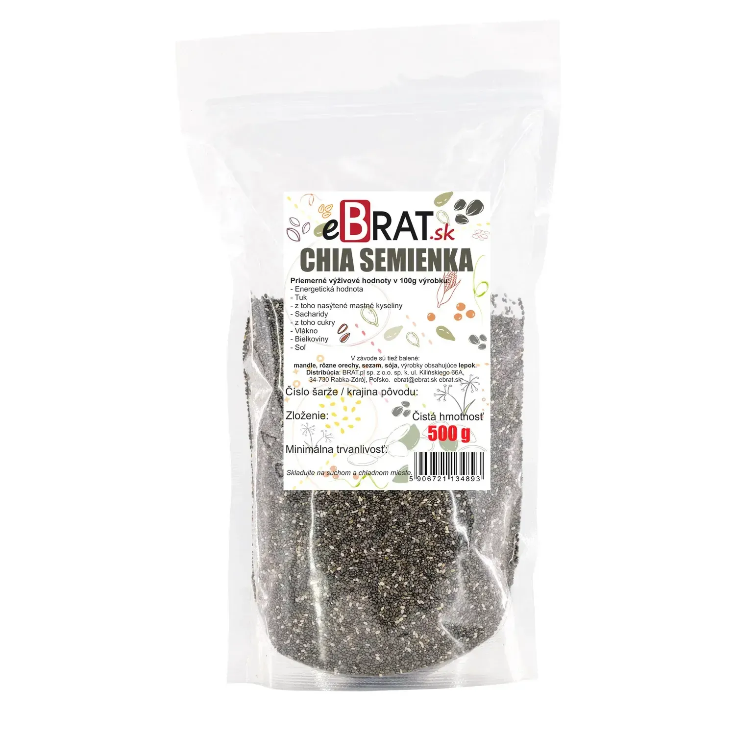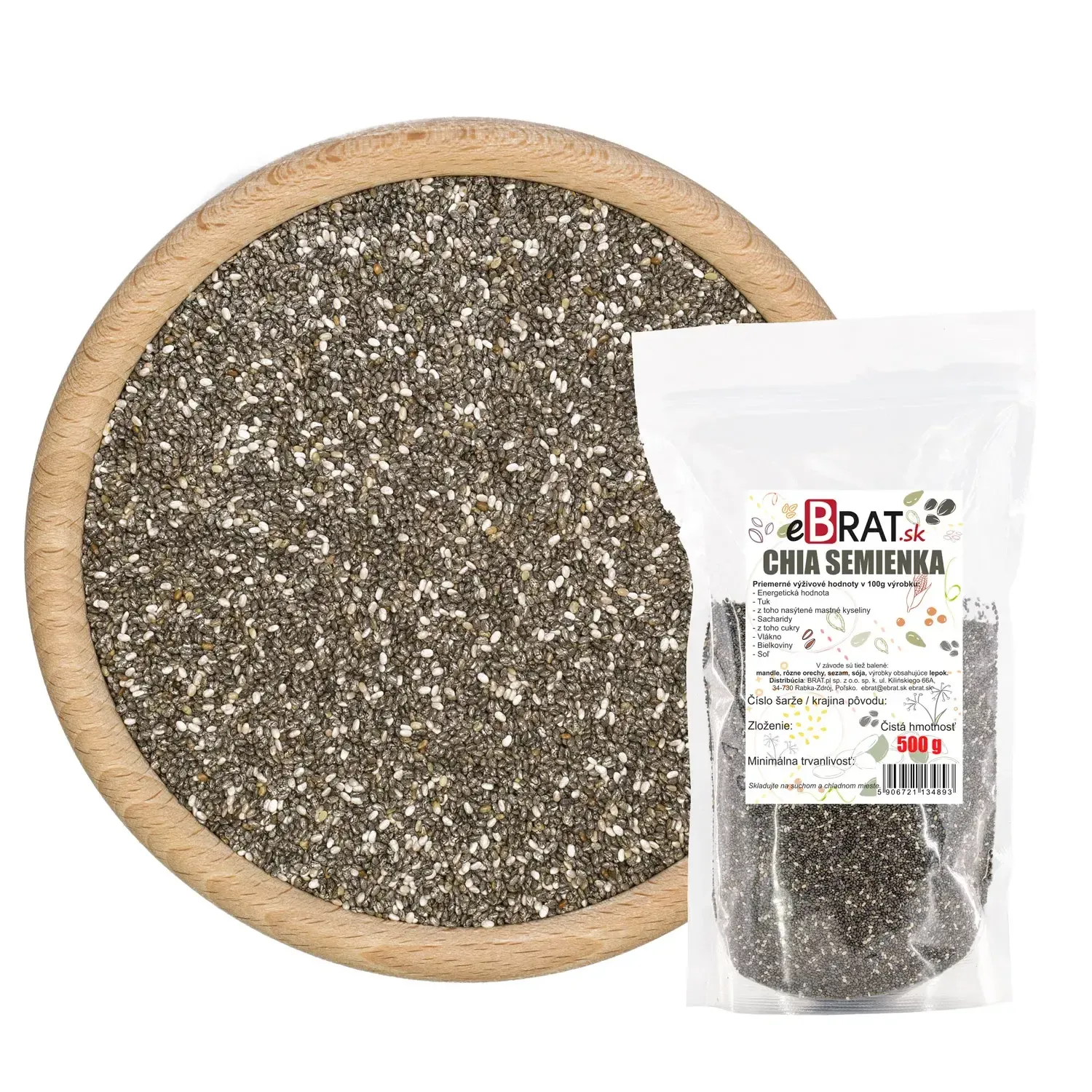Chia semienka sú skutočným superpotravinovým hitom, plné omega-3 mastných kyselín, ktoré podporujú zdravie srdca a mozgu. Sú bohatým zdrojom vlákniny, ktorá podporuje trávenie a pomáha udržiavať pocit sýtosti, čo môže byť užitočné pri kontrole hmotnosti. Obsahujú množstvo bielkovín, vďaka čomu sú výbornou voľbou pre osoby na rastlinnej strave, ako aj minerály ako vápnik, horčík a fosfor, ktoré posilňujú kosti a zuby. Vďaka prítomnosti antioxidantov chia semienka pomáhajú chrániť telo pred účinkami voľných radikálov a podporujú celkovú imunitu.